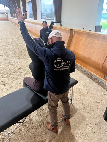 Through the work I have done with Andy Thomas (USA's Olympic Team Physio) I can now a Certified Testt Coach qualified to correct the rider through a series of tests. I can assess your problem and fix it generally within that session. After providing the tools and awareness, it is the rider that would need to take responsibility for ensuring they work to create better balance with the horse. If required I can use my performance cameras (filming at 300 frames per second) to carry out a detailed gait analysis on the horse or the Tekscan Pressure Mat to assess pressures under the saddle. This ensures we are improving things by changing saddles, bridles, girths, rider position, foot balance etc. (there is an extra cost for use of the technology - please see the other pages in Menu )